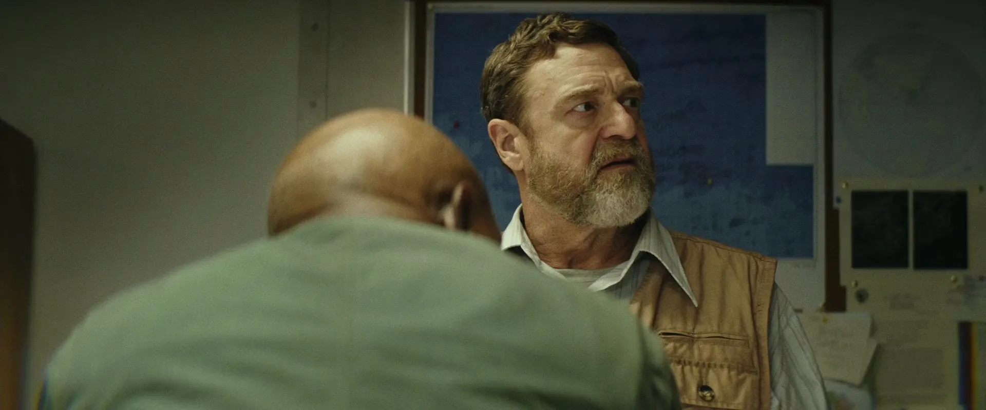Starring: Tom Hiddleston as Captain James Conrad, Samuel L. Jackson as Lieutenant Colonel Preston Packard, John Goodman as Bill Randa, Brie Larson as Mason Weaver, Jing Tian as San Lin, Toby Kebbell as Maj. Jack Chapman / Kong Mo-Cap Services, John Ortiz as Victor Nieves, Corey Hawkins as Houston Brooks, Jason Mitchell as Glenn Mills, Shea Whigham as Earl Cole, Thomas Mann as Reg Slivko, Terry Notary as Kong Mo-Cap Services, John C. Reilly as Hank Marlow, Marc Evan Jackson as Steve Woodward, Eugene Cordero as Reles, MIYAVI as Gunpei Ikari, Will Brittain as Young Marlow / Marlow's Son, Richard Jenkins as Senator Al Willis, Allyn Rachel as Secretary O'Brien, Robert Taylor as Athena Captain, James M. Connor as General Ward (voice), Thomas Middleditch as Jerry (voice), Brady Novak as Base Guard, Peter Karinen as Chinook Pilot, Brian Sacca as Chinook Co-Pilot, Joshua Funk as Seismic Soldier, Daniel F. Malone as Boat Captain, Glenn Kiwi Hall as Boat Captain, Garreth Hadfield as Crew Chief, Shannon Brimelow as Kamikaze Pilot, Jon Quested as Dead Pilot, Korey Williams as Sunglasses Pilot, Dat Phan as Bar Thug, Cynthy Wu as Thug's Girlfriend, Beth Kennedy as Marlow's Wife, Bryan Chojnowski as Chicago Taxi Driver, Nick Robinson as Bar Guest (uncredited), Kevin Kent as Military technical advisor, Erin Moriarty as Bar Guest (uncredited)